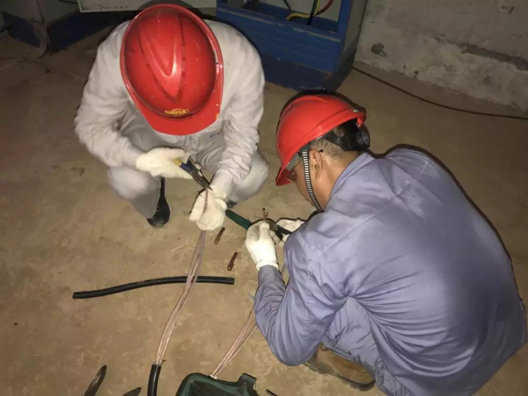 10:00,200米电缆铺设到位,班组成员分为两组,从电缆两端同时开始作业,割开绝缘、压接铜鼻子、确认相序、开关端子接线紧固、摇电缆绝缘、开关送电,一气呵成。
