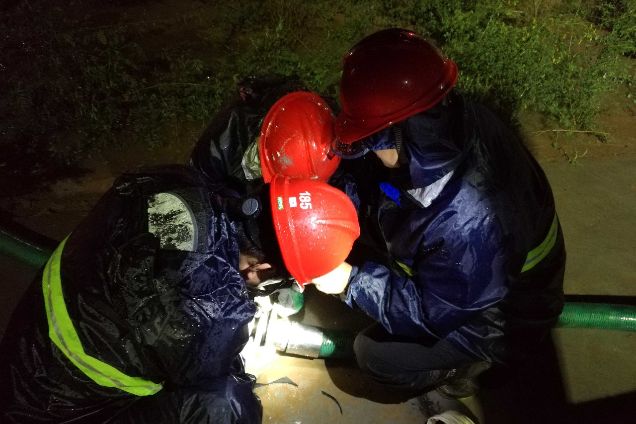 9月12日,瓢泼大雨下了整整一天,晚上21时许赵石畔煤电生活污水池水位突然急剧升高,且已超过警戒水位,机务二队立刻组织人员投入抢修工作。阵阵寒风里,大雨如注,雨水顺着抢修人员的衣领直往脖子里灌,但大家没有一个人临阵退缩,一直工作到凌晨1点多水位下降,警报解除,全体人员才“收兵回营”。