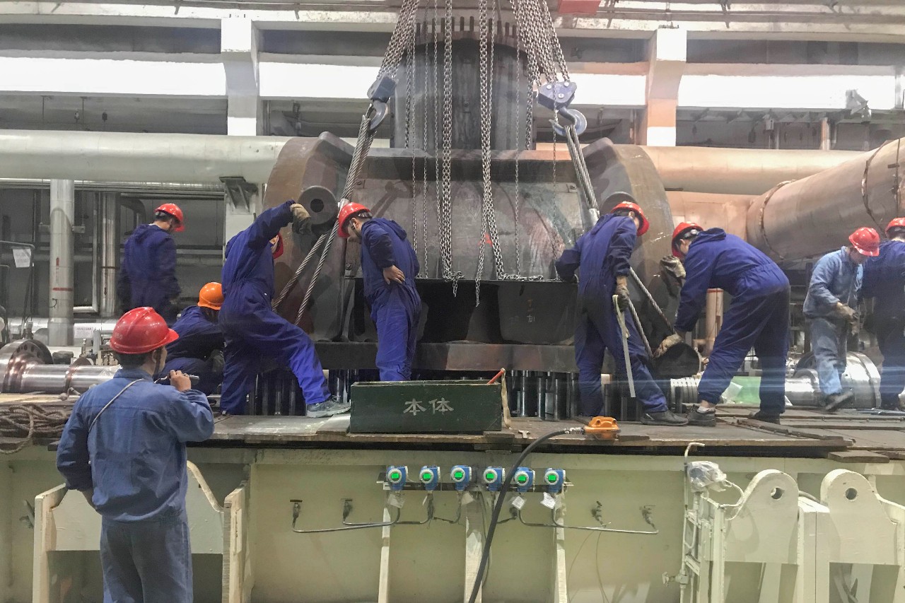 本次工作的重中之重是#6机高背压转子更换,直接关系到机组能否按期对外供热,仅有13人的主机班承担起了这项需要35人担负的重任,他们组织精兵强将,加班加点,通宵奋战在生产一线。在低压缸的解体过程中,因为隔热罩遮挡,电动工具不能正常使用,面对50多个M75×460的大型螺栓,班组全体人员纷纷上阵,用大锤一锤一锤敲、用扳手一根一根拆,最终只用了2天时间,为后续的工作赢得了宝贵时间。