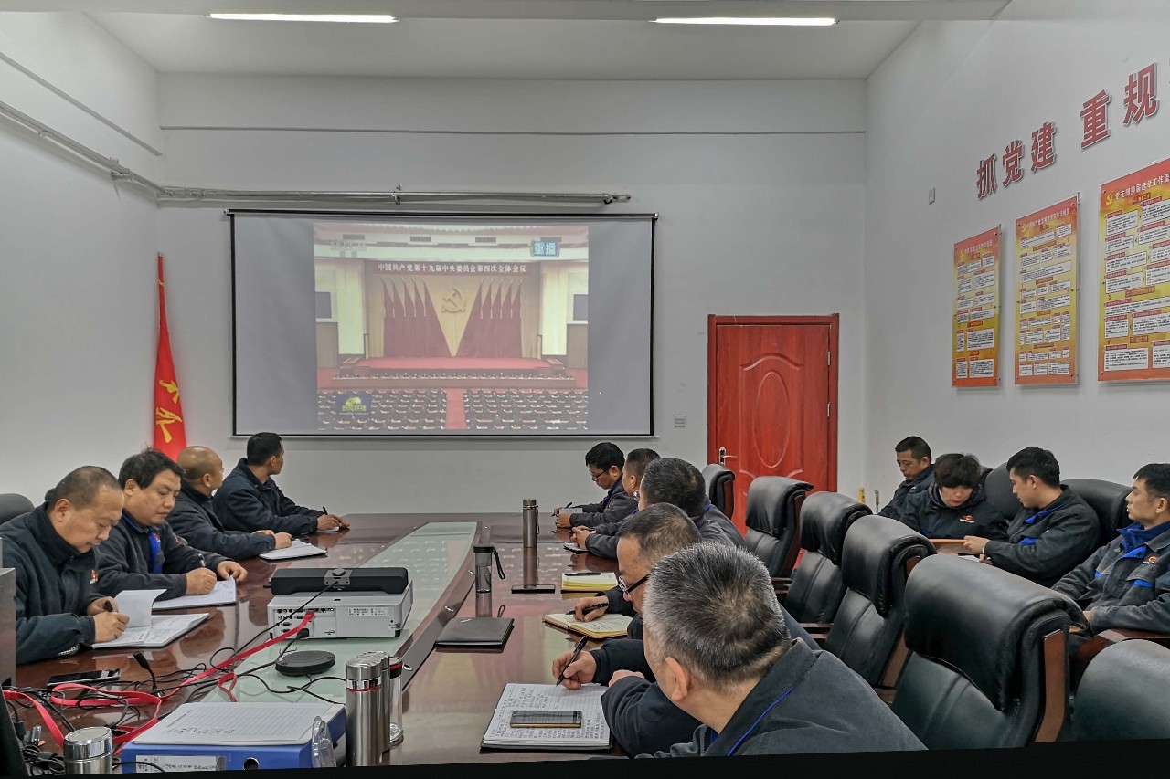 11月27日上午,麟北项目部党支部组织全体党员、入党积极分子及管理人员, 传达学习十九届四中全会精神,部署学习贯彻落实工作。