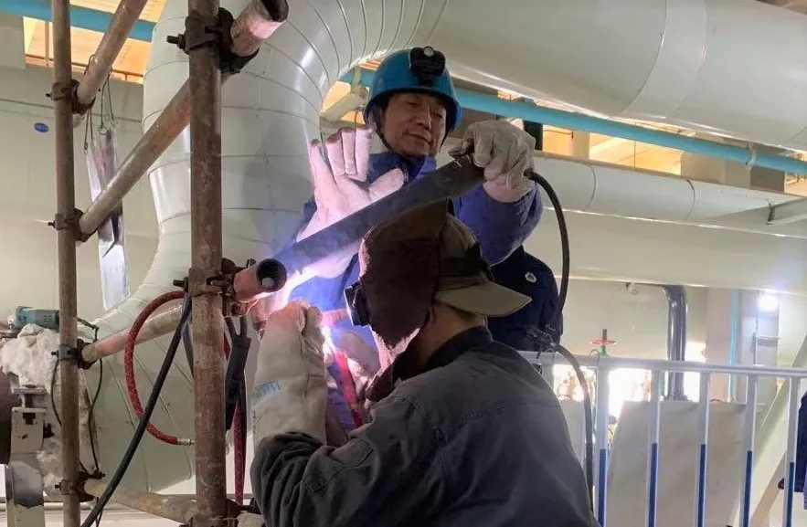 到达当天,全部人员马不停蹄,即刻投入到紧张的检修工作中。此次#1号机组的临修,任务重、项目繁杂,除氧器取样门焊口、炉送风机供气母节漏点焊补、石膏旋流渗流管焊接……每一项任务都是难啃的“硬骨头”,每一项工作都需要和多个专业协同进行,但大家没有一丝懈怠,一直全身心进行工作,即使春节期间也没有停工,每一名工作人员始终兢兢业业,从预热、焊接、到热处理、射线检测,每一个环节都做得一丝不苟、每一道工序都力求做到精益求精。