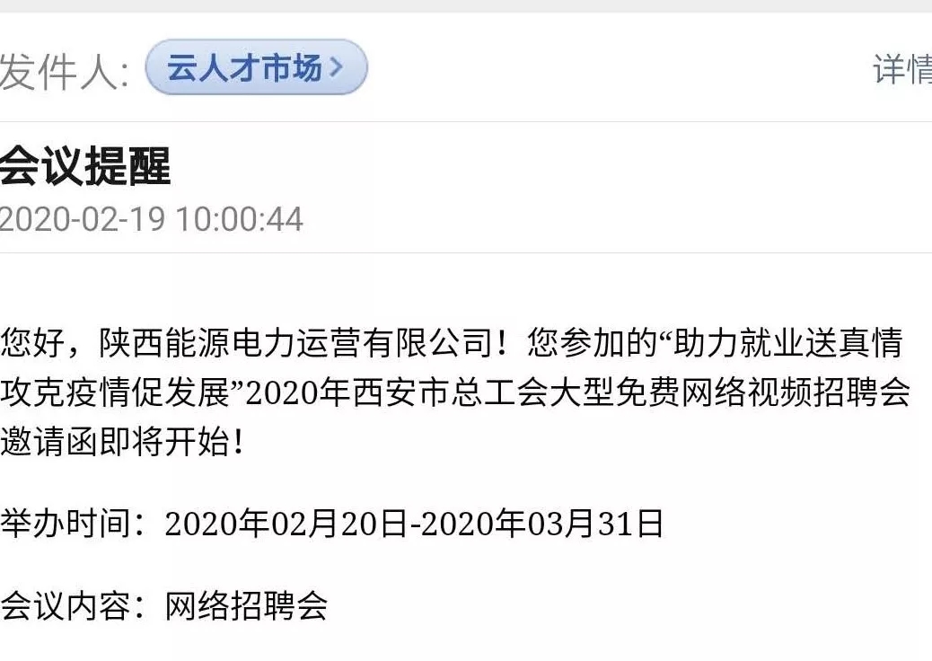 近日,在突如其来的疫情使原计划参加的春季校招会和大型综合招聘会全部被迫取消的情况,为紧紧抓住春季招聘的“黄金期”,确保为公司招聘到优秀的人才,人力资源部主动作为,及时调整招聘方式,一方面加强与华北电力大学、西安理工大学、武汉大学等高校联系,及时办理好公司参加网络视频校招会的各项审核手续,一方面积极联系211校招网、募格科聘等国内知名招聘平台,不断拓宽招聘渠道。截止2月19日,公司共通过五所高校资格审核,预约成功省内和高校网络视频招聘会8场,参加西安市春风行动网络视频招聘会一次,收到应聘简历116份,为春招工作开了个好头。