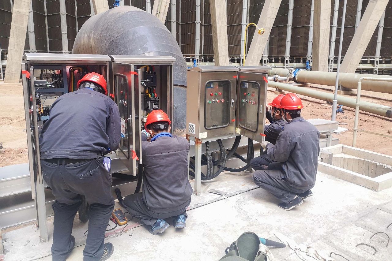 3月9日,商洛项目部仪电队对#2机间冷塔疏水泵进行维护