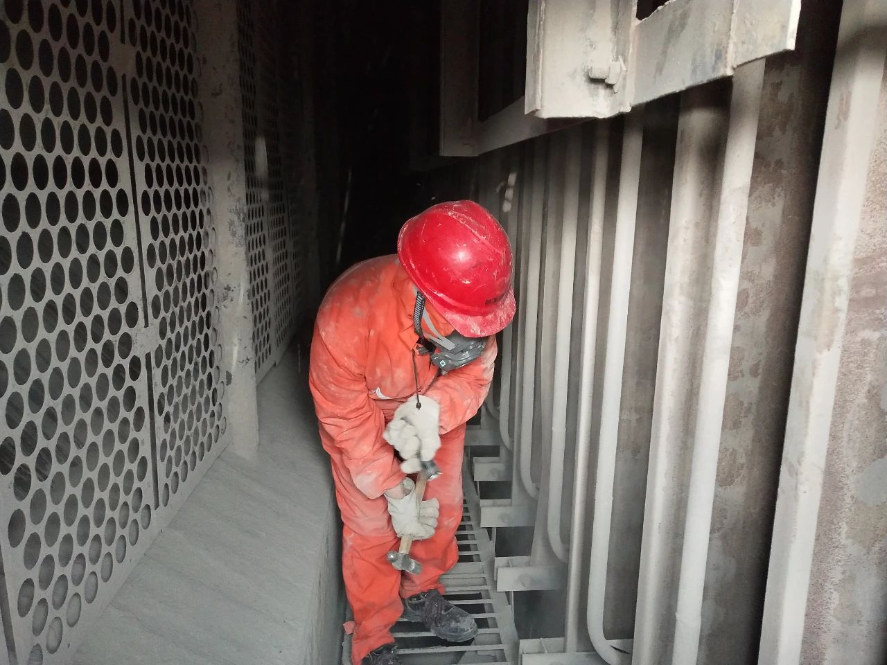 3月10日,商洛项目部机务队锅炉班在#2炉电除尘内进行检查