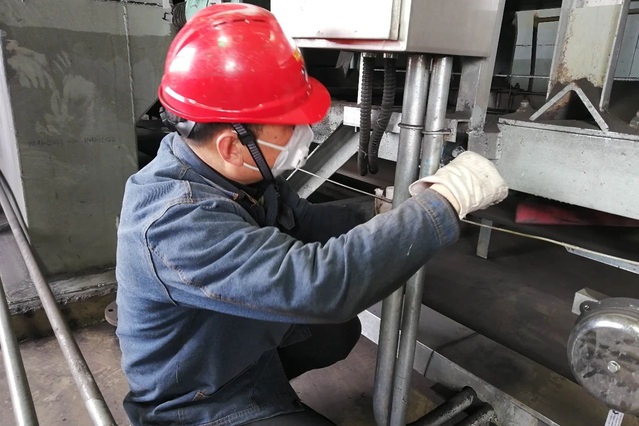 3月11日,麟北项目部输煤班马忠勇在消除#7皮带清扫装置故障