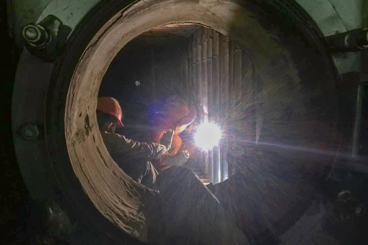 3月5日,赵石畔项目部在#1炉炉膛内更换防磨瓦