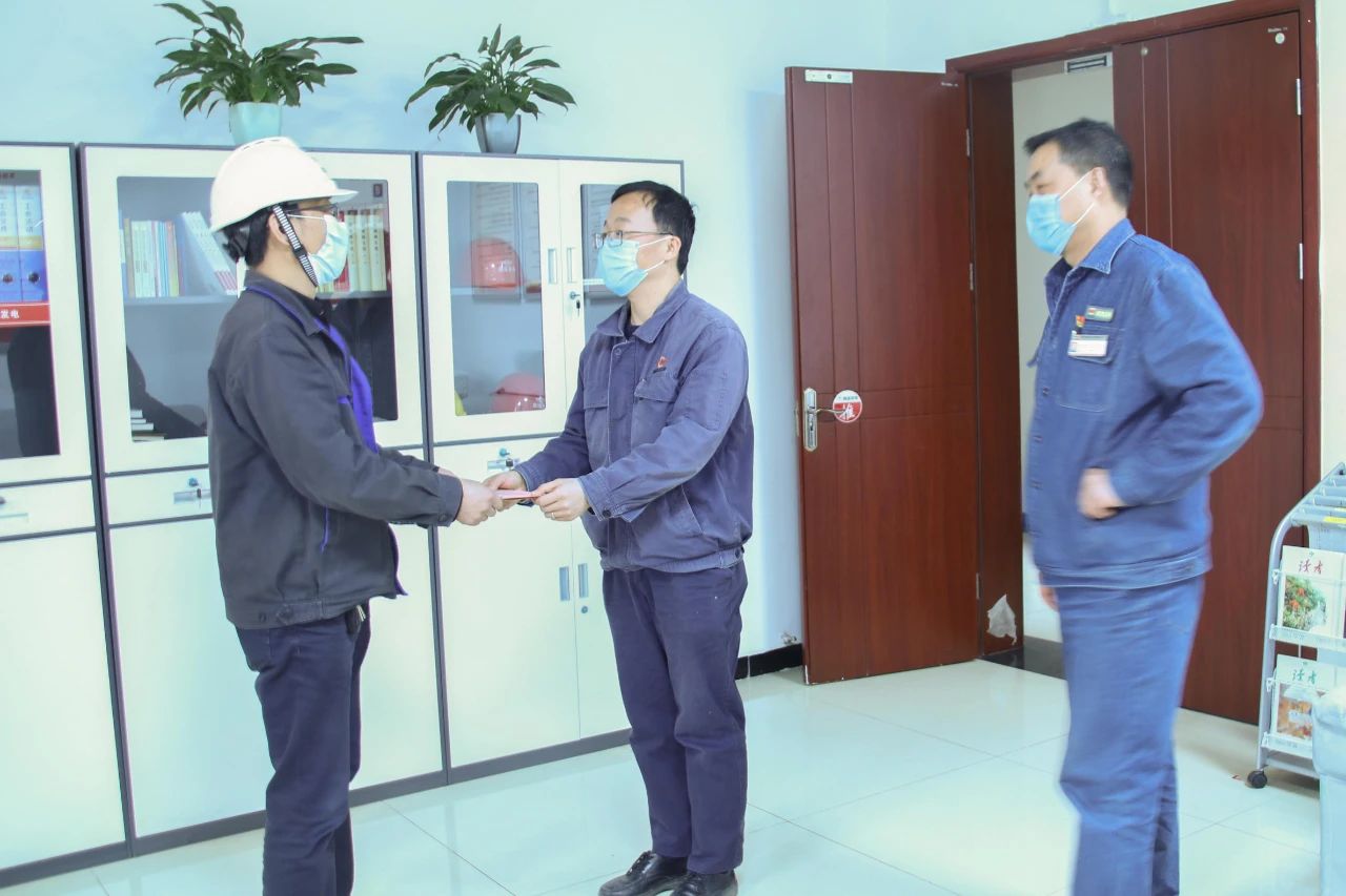 4月21日,商洛项目部领导前往商洛发电设备部,亲手将2900元爱心捐款交到田超同志手中。