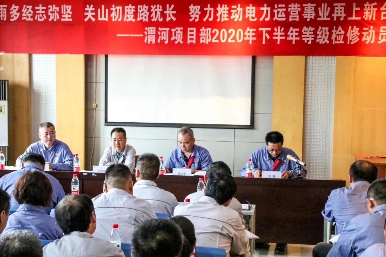 8月18日,渭河项目部召开2020年下半年等级检修动员会,公司副总经理武红幸、渭电公司副总经理王联盟及相关人员100余人参加了会议。