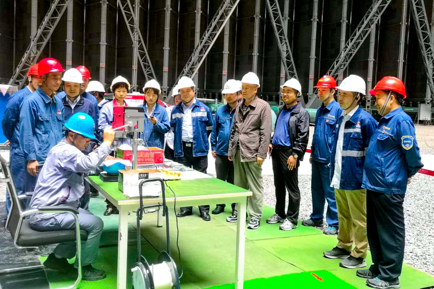 在间冷塔内,公司副总经理雷喜鸣向李智学介绍了公司精细化展示筹备情况。调研组实地观摩了气球上A4纸打孔等职工绝活,项目部职工惠海涛在现场展示过程中,沉着冷静一气呵成,完美的表现赢得了调研组人员的热烈掌声。