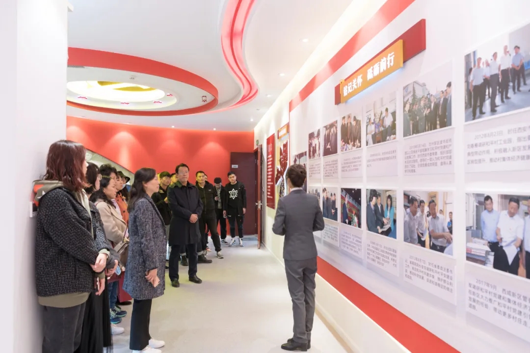 讲座结束后,参会人员前往西咸新区沣东新城和平党群服务中心进行对标学习,参观学习了红色文化区、廉政道路区、“和平之路”展览区,并在党建广场重温入党誓词,回顾入党初心。“我志愿加入中国共产党……随时准备为党和人民牺牲一切,永不叛党。”铿锵恢宏的誓词,强烈震撼着在场的每一位党员。