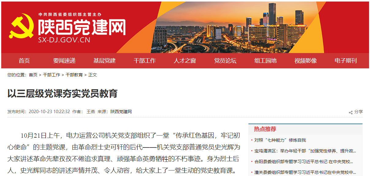 从2019年起,电力运营公司党委探索性开展班子成员、党支部书记及普通党员三级党课,增强党组织活动和党员教育管理工作的吸引力和实效性,在实践中蹚出党员教育管理的新路子。
