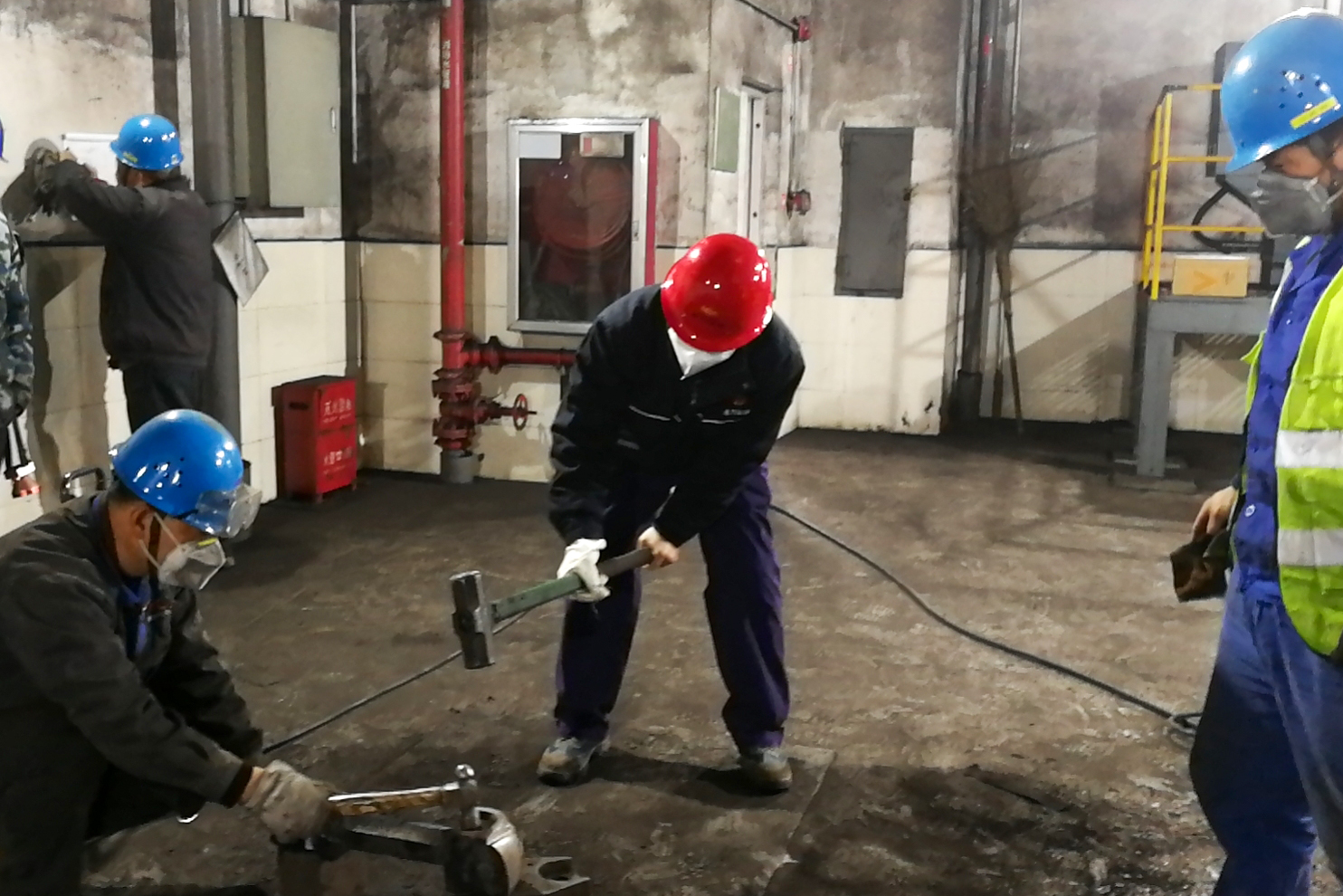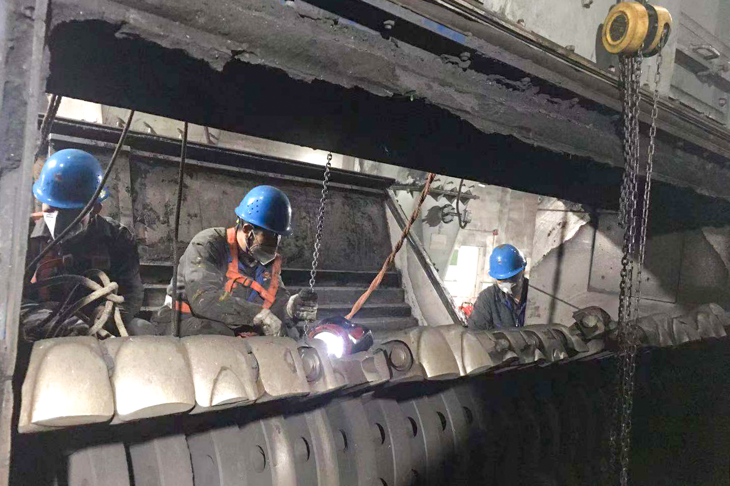 方案一经确定,抢修战役随即打响。全体参战人员多路分兵,称重配锤、打磨轴销、拆除损坏锤臂锤头,全力投入抢修工作。配对组在配重过程中,为了确保一次配重成功,补焊人员精益求精,将误差控制在0.01kg内;拆卸组在环轴与锤臂夹死的处理中,丝毫没有因为拆卸困难而有一丝松懈,大家集思广益,商讨制作各种工器具、反复尝试各种拆卸方法。最终,在连续奋战48小时后,抢修任务顺利完成,试转一次成功。看着“满血复活”的设备重新投入使用,全体参战人员的脸上露出了会心的微笑。